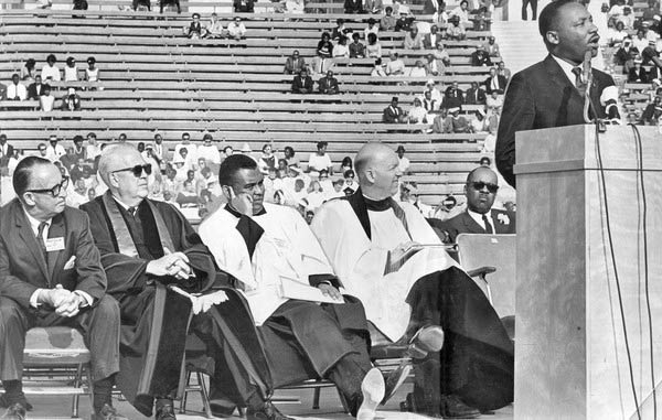 On May 19, 1947 Gilmore Stadium was packed with people waiting to hear a speech by Progressive Party candidate for President Henry A. Wallace. Wallace served as vice president under FDR and was also the Secretary of Agriculture (his specialty) and Secretary of Commerce. Also speaking at the event was actress Katharine Hepburn, whose speech stole the show.
