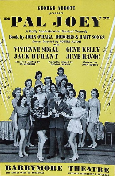 In 1940, he was given the leading role in Rodgers and Hart’s Pal Joey, again choreographed by Robert Alton, and this role propelled him to stardom. During its run he told reporters: “I don’t believe in conformity to any school of dancing. I create what the drama and the music demand. While I am a hundred percent for ballet technique, I use only what I can adapt to my own use. I never let technique get in the way of mood or continuity.” It was at this time also, that his colleagues noticed his phenomenal commitment to rehearsal and hard work. Van Johnson who also appeared in Pal Joey recalled: “I watched him rehearsing, and it seemed to me that there was no possible room for improvement. Yet he wasn’t satisfied. It was midnight and we had been rehearsing since eight in the morning. I was making my way sleepily down the long flight of stairs when I heard staccato steps coming from the stage…I could see just a single lamp burning. Under it, a figure was dancing…Gene.”