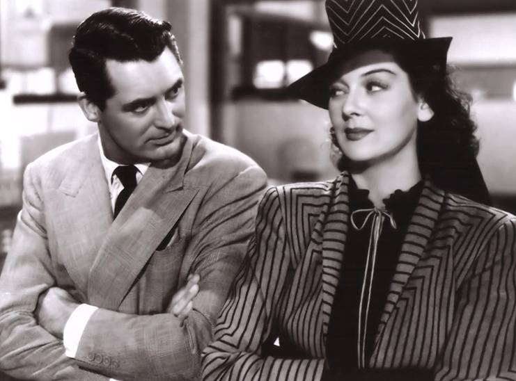 Russell continued to display her talent for comedy in the classic screwball comedy His Girl Friday (1940), directed by Howard Hawks. In the film, a reworking of Ben Hecht’s story The Front Page, Russell played quick-witted ace reporter Hildy Johnson, who was also the ex-wife of her newspaper editor Walter Burns (Cary Grant). Russell had been, as she put it, “Everyone’s fifteenth choice” for the role of Hildy in the film. Prior to her being cast, Howard Hawks had asked Katharine Hepburn, Irene Dunne, Claudette Colbert, Jean Arthur, Margaret Sullavan, and Ginger Rogers if they would like to play the brash, fast-talking reporter in his film. All of them refused. Russell found out about this while riding on a train to New York, when she read an article in the New York Times saying that she had been cast in the film and listing all the actresses who had turned the part down.