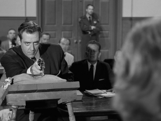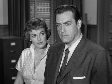 Burr’s occasional roles on the right side of the law include the aggressive prosecutor in A Place in the Sun (1951). His courtroom performance in that film made an impression on Gail Patrick and her husband Cornwell Jackson, who had Burr in mind when they began casting the role of Los Angeles district attorney Hamilton Burger in the CBS-TV series Perry Mason.