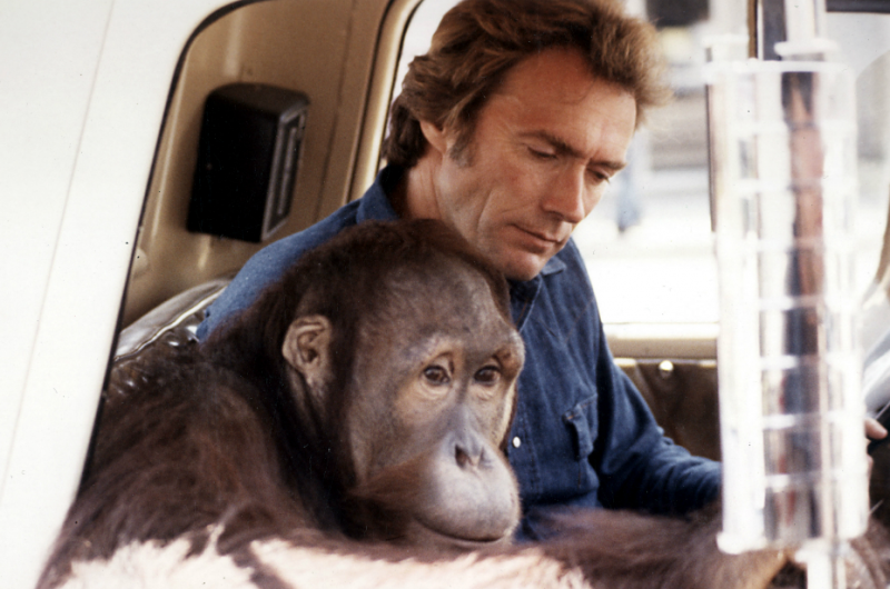 The following year, he starred in Every Which Way But Loose in an uncharacteristic offbeat comedy role. He played Philo Beddoe, a trucker and brawler who roams the American West searching for a lost love (Locke) accompanied by his brother (played by Geoffrey Lewis) and an orangutan called Clyde. The film proved surprisingly successful upon its release and became Eastwood’s most commercially successful film up to that time. Panned by critics, it ranked high among the box office successes of his career and was the second-highest-grossing film of 1978.