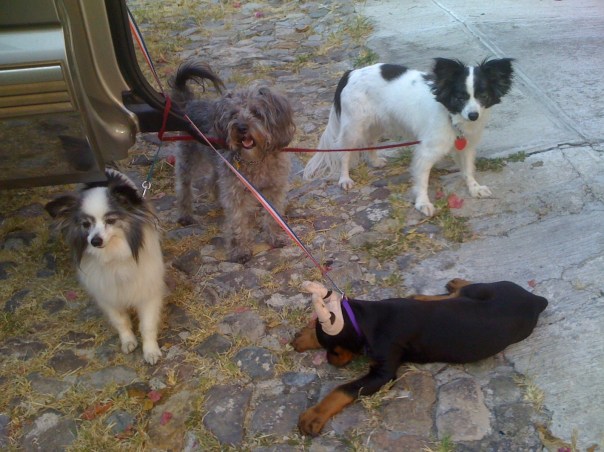 The next day I took over the wheel, convinced Thor now knew who was in charge. For three days he was subjected to the sights, sounds, and sensations (including the ubiquitous topas, Mexican speed bumps) of a typical road trip south of the border. He had company in the car, as we also have two small papillons, a male, seven-pound Beau, and a female, 14-pound Teri, as well as a two-year-old, 16-pound male schnoodle, Chico. What can I say?